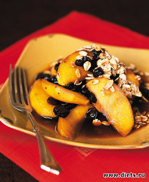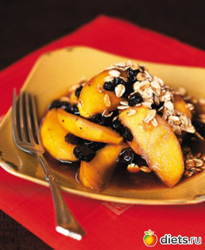 Для этого блюда годятся любые фрукты: яблоки, груши, персики. Подают с мороженым или бисквитом.