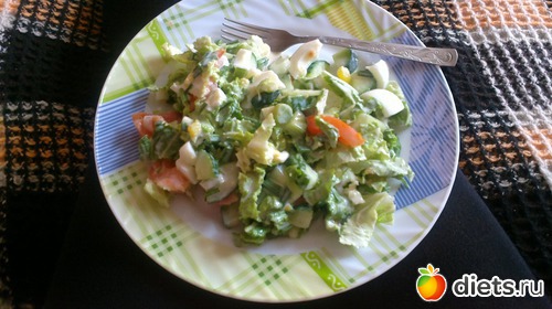 Сев на Протасовку весной, я поняла, как же все таки неудобно это в такой неовощной сезон. Зато, когда пришла с рынка голодная и злая (тянула на себе море продуктов по лестнице на 6 этаж, потому что лифт был сломан... кучу еды на неделю!!), на ходу сварганила салатик, который теперь по праву стал моим любимым!