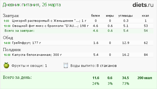 Затрак был полностью, как вчера и так же был похожий грейпфрукт сегодня, только послаще, капуста и вовсе была не запланирована. Намечалось съесть йогурта, но капуста была ближе, да и больше её по весу можно было себе позволить. Ела без масла и соли, только поперчила чу-чуть. Заметила, что раньше была чаепийцей, а вот в последние дни замечаю, что чая совсем не хочется?! Либо приходится вливать в себя, либо вообще не пью, как, к примеру сегодня...в меню было, а я пропустила...