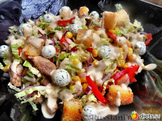 Греховно вкусный салат из пекинской капусты, курицы и крутонов с оригинальной заправкой взят отсюда: russianfood.com