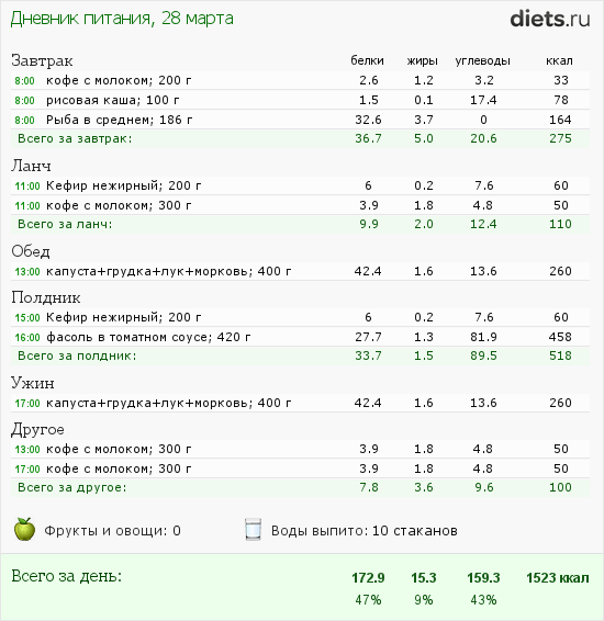 Сегодня питалась так: