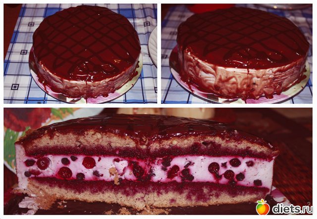 Аккуратно острым ножом отделить торт от стенок формы и убрать форму.