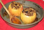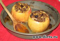 Яблоки помыть, вынуть сердцевину и в образовавшиеся углубления положить рис. (можно использовать любую кашу)