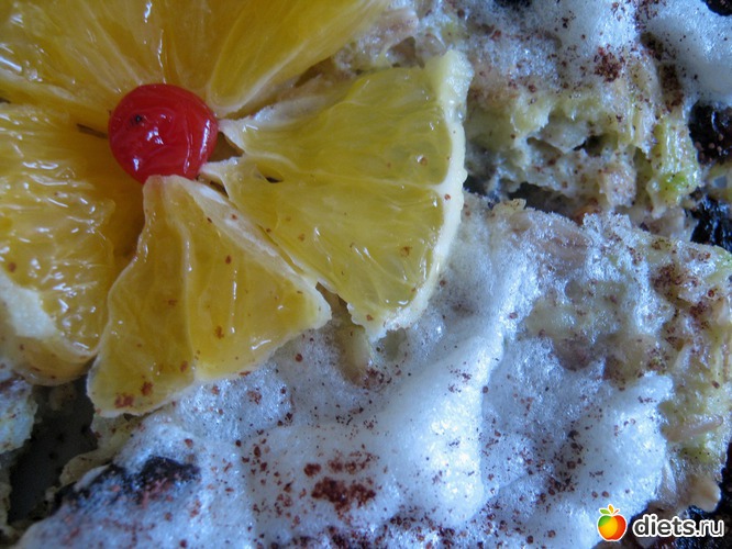Затем оставшимся взбитым белком покрыть поверхность запеканки и ещё раз поставить тару в микроволновую печь на 1 минуту.