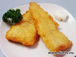 Рыбу нарезать, посолить поперчить по вкусу. Обмакнуть в кляр и выложить на горячую сковороду.