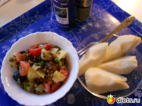 Ужин у меня был такой (к чечевице добавила грушу на десерт):