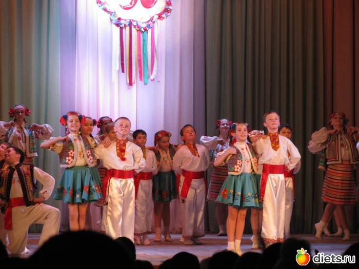 Ходила на концерт. Местному народному танцевальному ансамблю "Веселка" (по-русски Радуга) в этом году исполнилось 50 лет. Я вроде к танцам ровно дышу... но это было так ярко, зажигательно, они так хорошо играли мимикой и всем телом!!! мне очень понравилось! У них три возрастных группы - младшая где-то лет до 8-10, средняя - 10-17 и старшая.