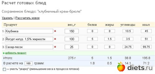 На порцию выходит 195,8 ккал. Зато там почти 300 грамм!!!