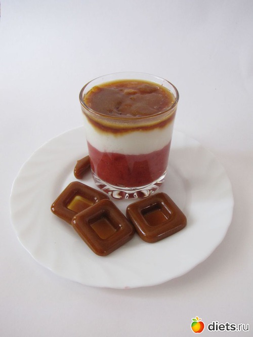 Когда ломаешь слой карамели, он хрустит, словно лед на весенней реке! И подтаивает по краям, обволакивая мягкий нежный йогурт, словно теплый майский вечер ложится на плечи... Лирика, романтика, красота - все в одном бокале!!!