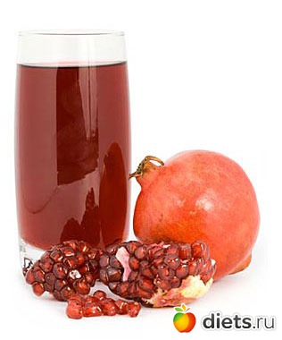 Гранатовый сок — один из самых полезных и биологически активных продуктов. Содержит большое количество витамина C, B1, B2, A, E, PP, калий, кальций, железо, фосфор, магний, натрий. Этот напиток повышает гемоглобин, при регулярном употреблении заметно улучшает самочувствие гипертоников, способствует нормализации работы сердца. Содержащиеся в гранате полифенолы уничтожают свободные радикалы, являющиеся причиной раннего старения и множества серьезных заболеваний, ингибирует развитие рака и опухолей. Однако следует помнить, что благодаря содержанию большого количества кислоты, гранатовый сок может оказывать негативное воздействие на желудок, поэтому необходимо употреблять его в разбавленном виде. Гранатовый сок особенно необходим людям, которые находятся на диете, причем не только из-за высокого содержания витаминов, но и потому что он успешно борется с анемией, нередко возникающей при резком похудении. Наиболее полезен гранатовый сок в сочетании с морковным, так как они практически не содержат сахара, однако обогащают организм большинством необходимых микроэлементов.