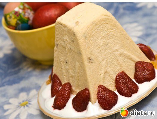 6. Подготовленную массу выложить в пасочницу (или в подходящую форму) и держать в холодильнике не менее суток. Пасха получается как крем, очень нежная, пастообразная, цвет красивый.