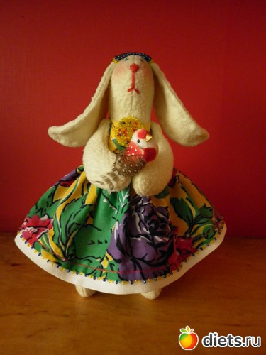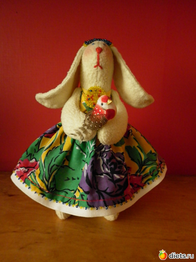 Куличи на столе, писанки и крашенки в корзинке, цветы и кролики