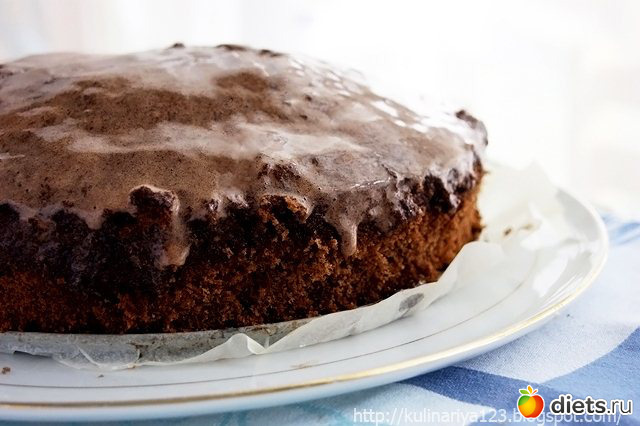 Выпекать при т.180 гр. минут 45. Горячий торт полить глазурью, чтобы пропитался."