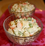 Креветки (предварительно разморозить) отварить 4 минуты в кипящей воде (слегка подсоленной)