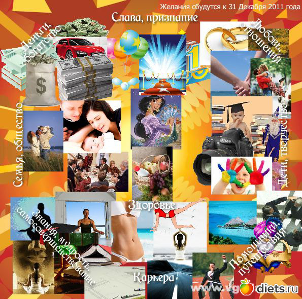 Наслаждаясь этим состоянием, произнесите несколько десятков раз формулу цели, чтобы ощутить полнее благодатную волшебную энергию формулы. Затем, взглянув с позиций этого идеального состояния на мир, примите какую-то роль (которая будет близка к вашему настоящему жизненному состоянию) и сформулируйте в виде утверждений десять целей для этой роли. Затем снова произнесите формулу цели, сосредоточиваясь одновременно вниманием на формуле и на образе цели. Или поступайте следующим образом. На отдельном листе запишите ясно и четко цель (как будто бы вы уже достигли этого), можете даже нарисовать, если способны, образ достигнутой цели. И затем на этом же листе напишите формулу цели. Известный американский актер Джим Кэрри, один из самых богатых в Голливуде, рассказывал, что в молодости, когда он был беден, он завел себе чековую книжку и, как бы играя, выписывал всем чеки на миллион долларов. Теперь для него это стало реальностью.