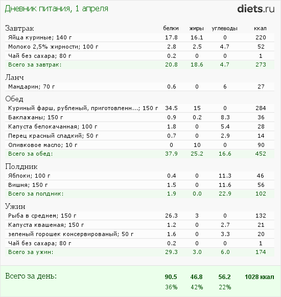 Заметь - жир только в яйцах и котлете куриной, ну исчо в салатах двух по 5 г, в каждом (на обед и ужин)