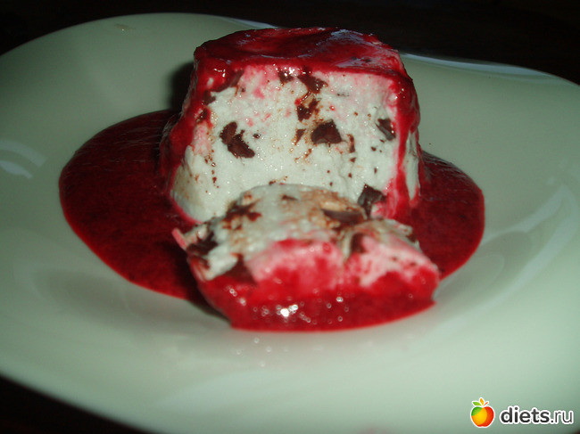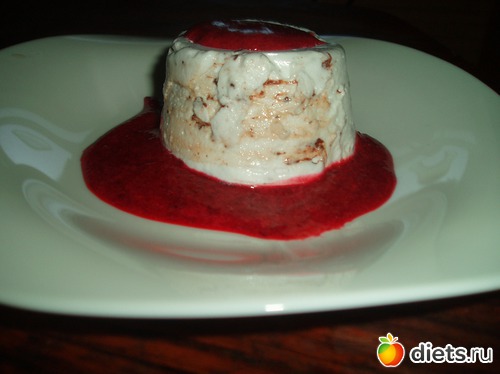 Достать формочки, провести по краям формы ножом, перевернуть формочку на тарелку чуть стукнув (у меня прекрасно все вышло). Полить соусом и наслаждаться.
