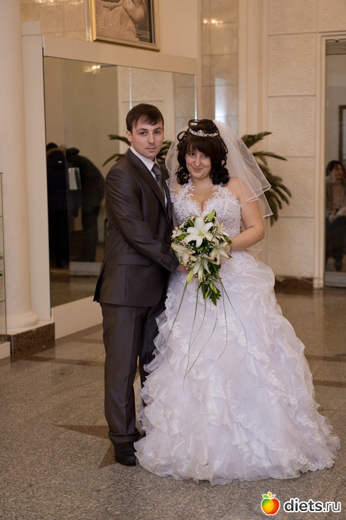 Кстати, вчера лазила на самую высокую полку нашего необъятного шкафа и нашла пакет со своим свадебным платьем) Не удержалась и примерила... Когда чуть больше года назад я его мерила в магазе, на мне было трудновать его застегнуть... Но все же я его взяла...в день свадьбы оно на мне застегнулось элементарно и было в самый раз, сегодня же я его СВОБОДНО застегнула...и в застегнутом виде могла перевернуть задом наперед!