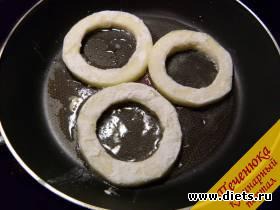 5) Разогреть сковороду с небольшим количеством подсолнечного масла, выложить кольца для обжаривания.