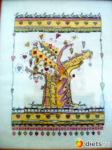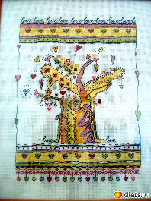 представляю вам свою работу "сердечное дерево" - вышивка крестиком. Но у меня она ассоциируется с "влюбленным деревом" которое расцвело и "влюбилось" с приходом весны.
