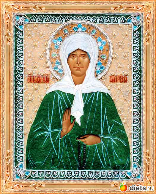 О блаженная мати Матроно, душею на небеси пред Престолом Божиим предстоящи, телом же на земли почивающи, и данною ти свыше благодатию различные чудеса источающи. Призри ныне милостивным твоим оком на ны, грешныя, в скорбех, болезнех и греховных искушениих дни своя иждивающия, утеши ны, отчаянныя, исцели недуги наши лютыя, от Бога нам по грехом нашим попущаемыя, избави нас от многих бед и обстояний, умоли Господа нашего Иисуса Христа простити нам все наши согрешения, беззакония и грехопадения, имиже мы от юности нашея даже до настоящего дне и часа согрешихом, да твоими молитвами получивше благодать и велию милость, прославим в Троице Единого Бога, Отца, и Сына, и Святаго Духа, ныне и присно и во веки веков. Аминь.