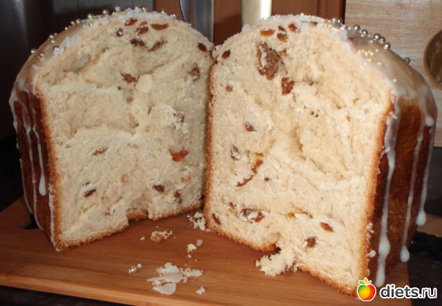 Через час тесто выложить на доску, вмесить в него изюм, еще побить, но осторожно, и дать подойти в той же посуде еще полчаса. Теперь тесто можно разложить в обмазанные маслом формы, дать тесту подойти, смазать верх кулича яйцом и ставить печь.