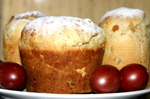 Желтки растереть с оставшимся сахаром до получения воздушной массы, добавить остальную муку, опару, щепотку соли, ванильный сахар или ванилин. Тесто месить до тех пор, пока оно не станет легко отставать от рук и стенок миски. Постепенно добавить растопленное сливочное масло, изюм, лимонную цедру и подготовленный миндаль.