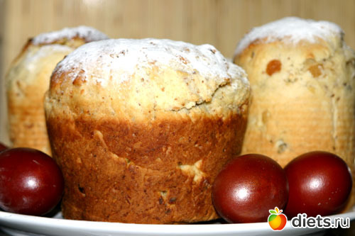 Тесто выложить в смазанную жиром и обсыпанную мукой форму (до 1/3 объема) и оставить в тепле для брожения. Когда тесто поднимется, кулич можно ставить в погретую духовку и выпекать до готовности.