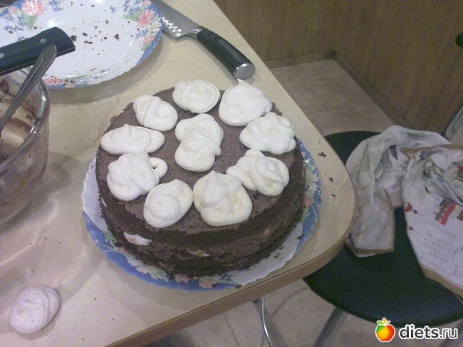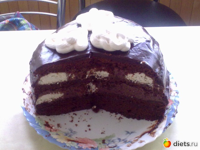 На фото - второй слой безе, после него еще корж, крем, глазурь