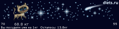 После последней диеты начала усиленно набирать вес во время сессии — прибавила меньше чем за месяц 7 кг, хотя ела мало, но включила в рацион сладкое. И тогда я случайно забрела на этот сайт, когда искала в Сети электронный учебник, и просто поразилась Катиным успехам! Начала следовать ее системе, а это ведь так просто! И начала скидывать вес, правда, медленно. Однако меня это только обрадовало: даже если бы вес не поднимался выше, а стоял на месте, это уже было бы хорошо! Потому что после срывов, сопровождающих любую диету, и переедания сладкого вес превосходил изначальный. Кроме того, здесь я нашла много полезных советов, в том числе что делать с растяжками. Пусть похудение пока идет медленно, но оно ИДЕТ! И самое главное, что не приходится себя особенно ограничивать: ем все, что хочется, в нормальных количествах — голодом себя не морю. Мне пока рано заявлять о каких-то успехах, но уверена, что ком-
