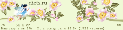 «Мне 20 лет, рост 165 см. В феврале я родила сынишку и во время беременности поправилась с 55 кг до 83. Это было ужасно. Я не могла ходить в последние дни девятого месяца. После родов весила 75 кг. В мае я немного похудела до 70. 9 мая купила себе весы и ужаснулась. Тут же зашла в Интернет и стала искать какие-нибудь интересные диеты, как вдруг наткнулась на ваш сайт. На следующий день перешла на новую систему. Сегодня, спустя полтора месяца я вешу 59 кг! У меня было множество вещей, которые я надевала еще до беременности, и я каждый день их примеряла. Сначала я просто влезла в джинсы, не застегивая их. Потом они сошлись на мне на одну пуговицу, затем на две, и так я влезла почти в весь свой гардероб!