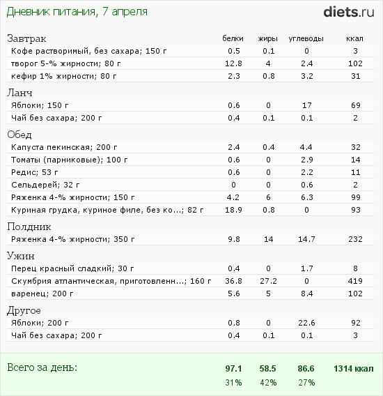 Калорийность продуктов