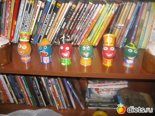 Кулич-покупаем самый маленький-я не ем,творожную пасху тоже не ем(такая привереда! Яйца красить и украшать полюбэс! Смари какие в том году были