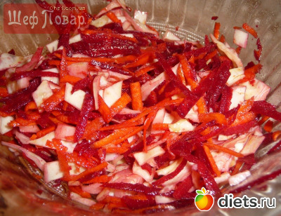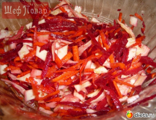Натираем на терке сырую морковь и сырую свёклу... Режем белокочанную капусту. Добавляем лимонный сок и нужно очень хорошо салат перемешать ( еще лучше отжать ). Никакой соли!!! Употреблять салат можно до 8 раз в день, допустим каждый час по стакану салата. Употреблять салат можно до 7 вечера))))))