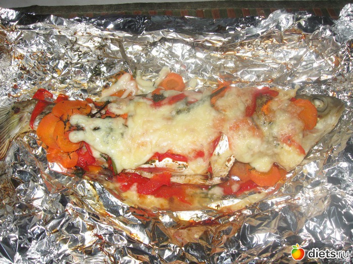 А на выходных муж поймал мне рыбку под названием голавль и я запекла ее в фольге в АГ с морковкой, болгарским перцем и сыром, вкусняшка