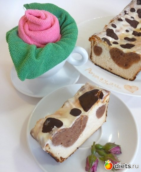 7. Также растапливаем на водяной бане белый шоколад, перемешиваем со сливками. Покрываем творожник белым шоколадом и украшаем «сердечками» и «кружочками».