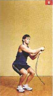 Одновременно выполняйте вращения скакалкой и приседания в пол амплитуды