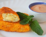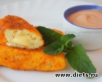 Влажными руками сформировать картофельные палочки, в середину положить сыр, обвалять в панировочных сухарях и обжарить с!4-х сторон на растительном масле до образования золотистой корочки.