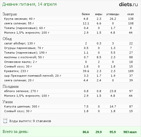 Окей, сегодня все не плохо по питанию...главное не сорваться - так как меня пригласили на кальян вечером)))