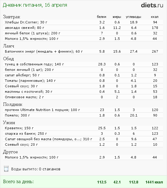 в среднем 1500...я стараюсь не выходить за эту цифру, но чаще получается 1700... Б- 120-130, У - 140 (это все вместе), Ж - 30 примерно...