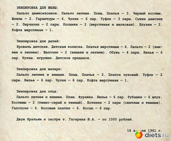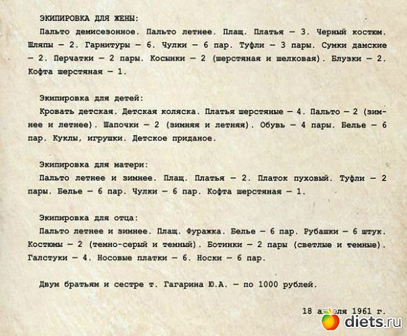 Распоряжение Совета Министров СССР о подарках Ю. А. Гагарину ...