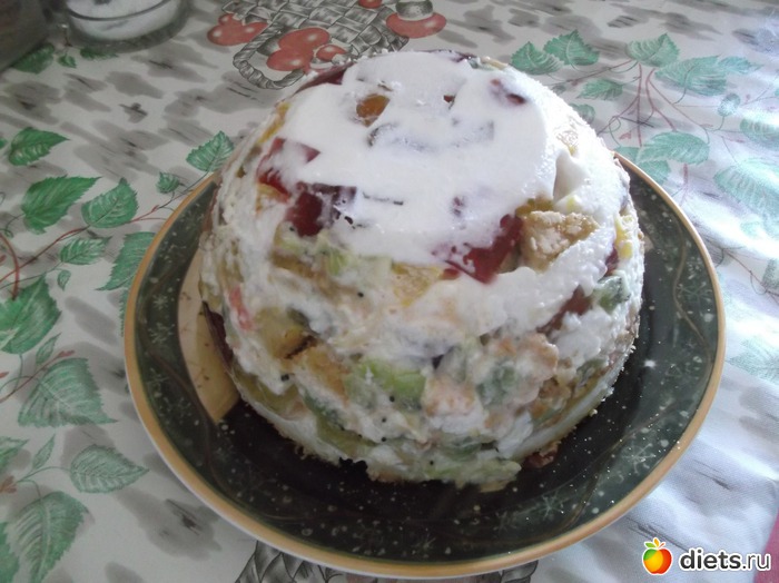 Дальше переворачиваем на красивое блюдо и украшаем(или не украшаем), и торт готов. Приятного аппетита!