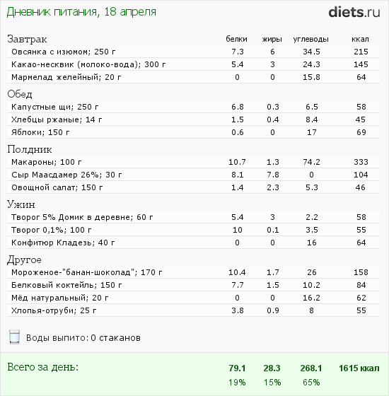 И тут ещё не написано, что жиров в любой день должно быть не более 25г на весь рацион. В углеводные дни у меня обычно больше выходит (((