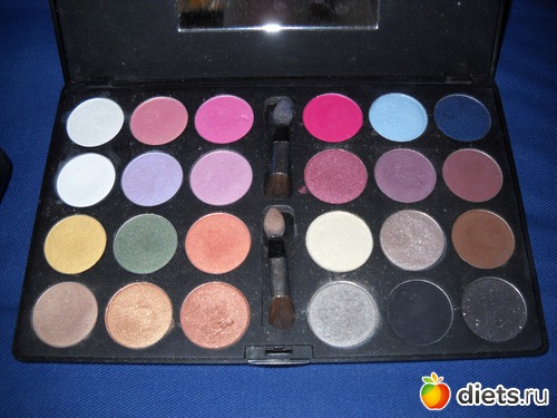 Их у меня две. Одну ссобой ношу, все пытаюсь купить ей замену, побольше... Вторая домашняя. Я заканчивала курсы визажиста, у меня осталась профессиональная косметика. Хватает ее очень на долго. И качество конечно хорошее.