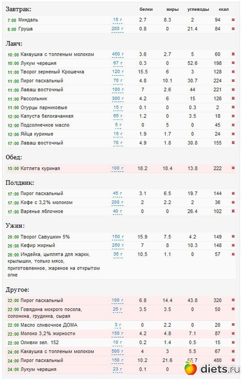 А углеводов много потому, что под руку попались))) Пирогами после Пасхи угощали, а так у меня дома даже нет хлеба никогда...
