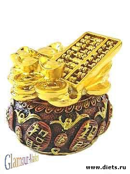 Считается идеальным вариант, когда вы сложите в нее все свои ювелирные изделия. Если золотой предмет один — его можно дополнить камешками, выкрашенными в золотой цвет, символизирующими золотые слитки. Золото очень хорошо включает энергию богатства. Делают такой талисман один раз, со временем он набирает силу, и его передают по наследству.