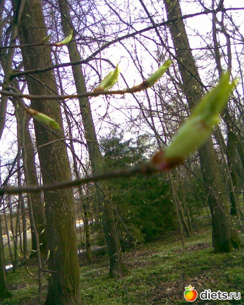 И листики на некоторых деревьях начинают распускаться, нежные такие