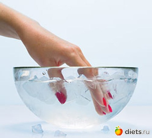 воск, растопленный на водяной бане. Очень аккуратно опускает кончики пальцев в воск и МГНОВЕННО в холодную воду. При правильном выполнении, на кончиках пальцев образуется корочка из воска, внешне напоминающая наперсток. Сверху одеваются перчатки (желательно хлопчатобумажные). В перчатках можно спать всю ночь. Курс лечения – две процедуры в неделю. Очень эффективный способ против ломкости ногтей.