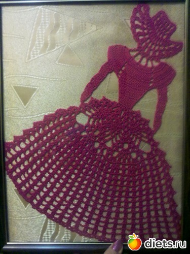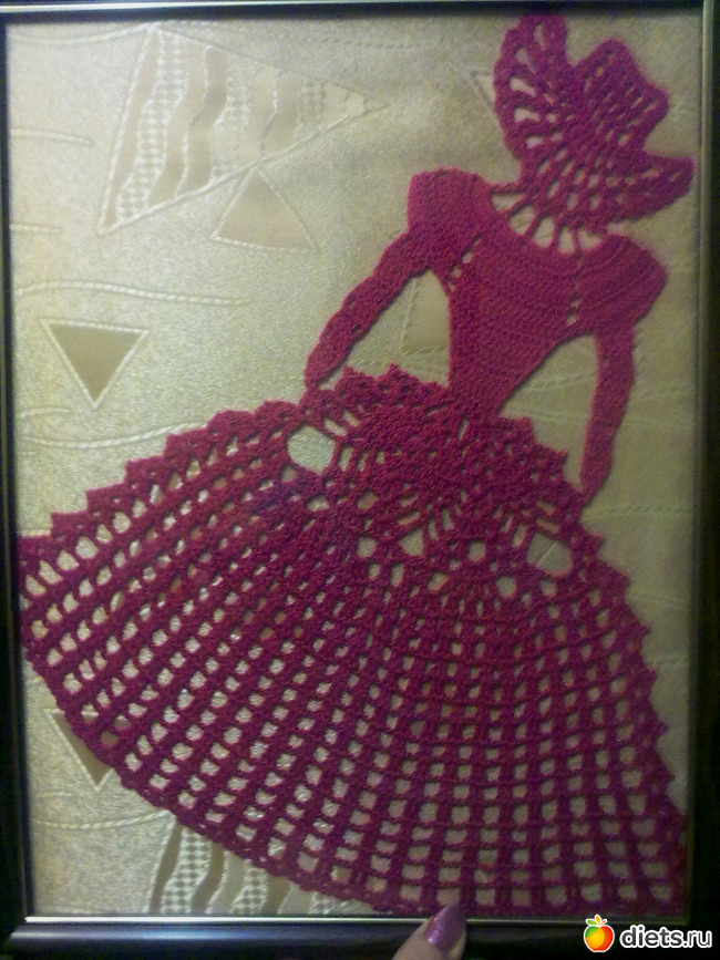 Я совсем даже не против, я только за.У меня это картина.Сначала связала даму, затем решила сделать картину.