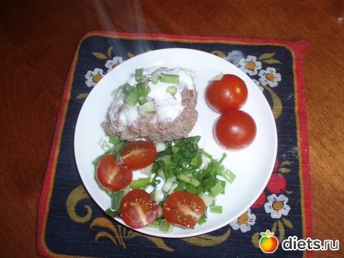 Через 8-10 минут обмазать котлетки йогуртом (по желанию - смешать йогурт с горчицей и т.д.), добавить зелень (у меня не было по рукой) и поставить в духовку минут на 15.